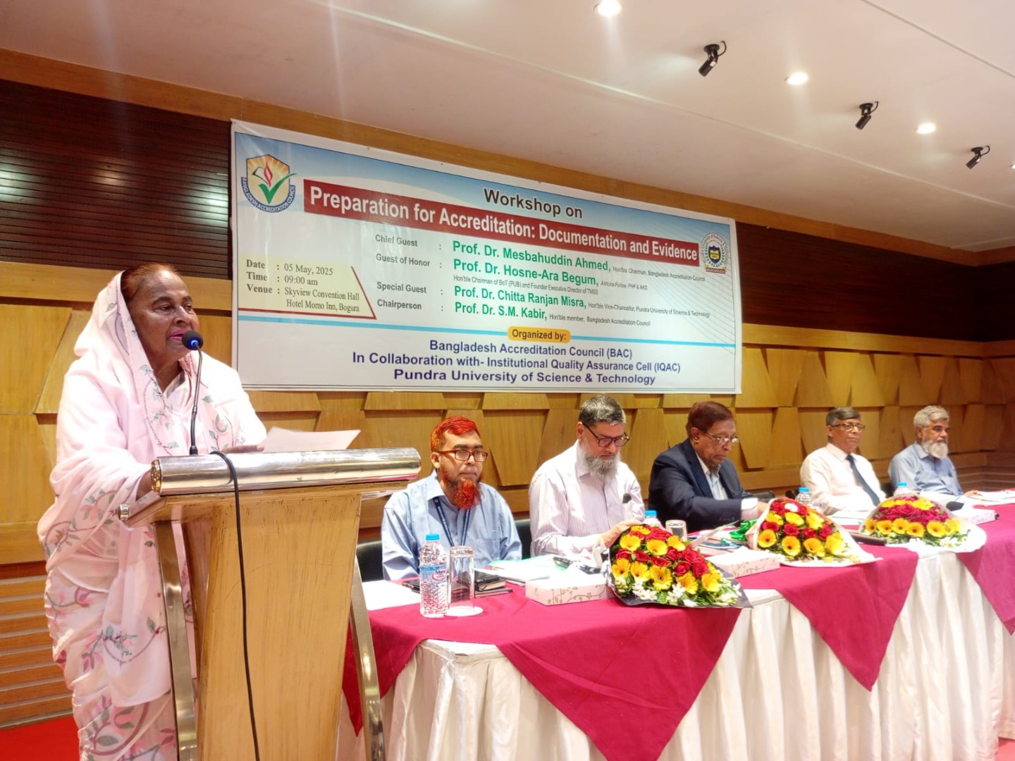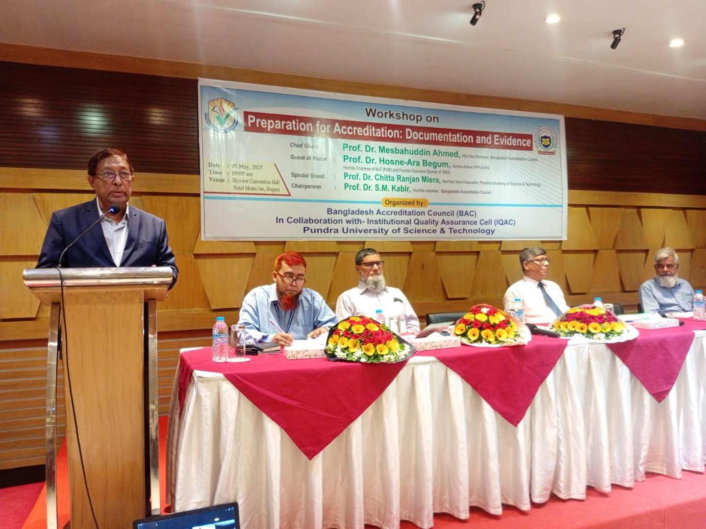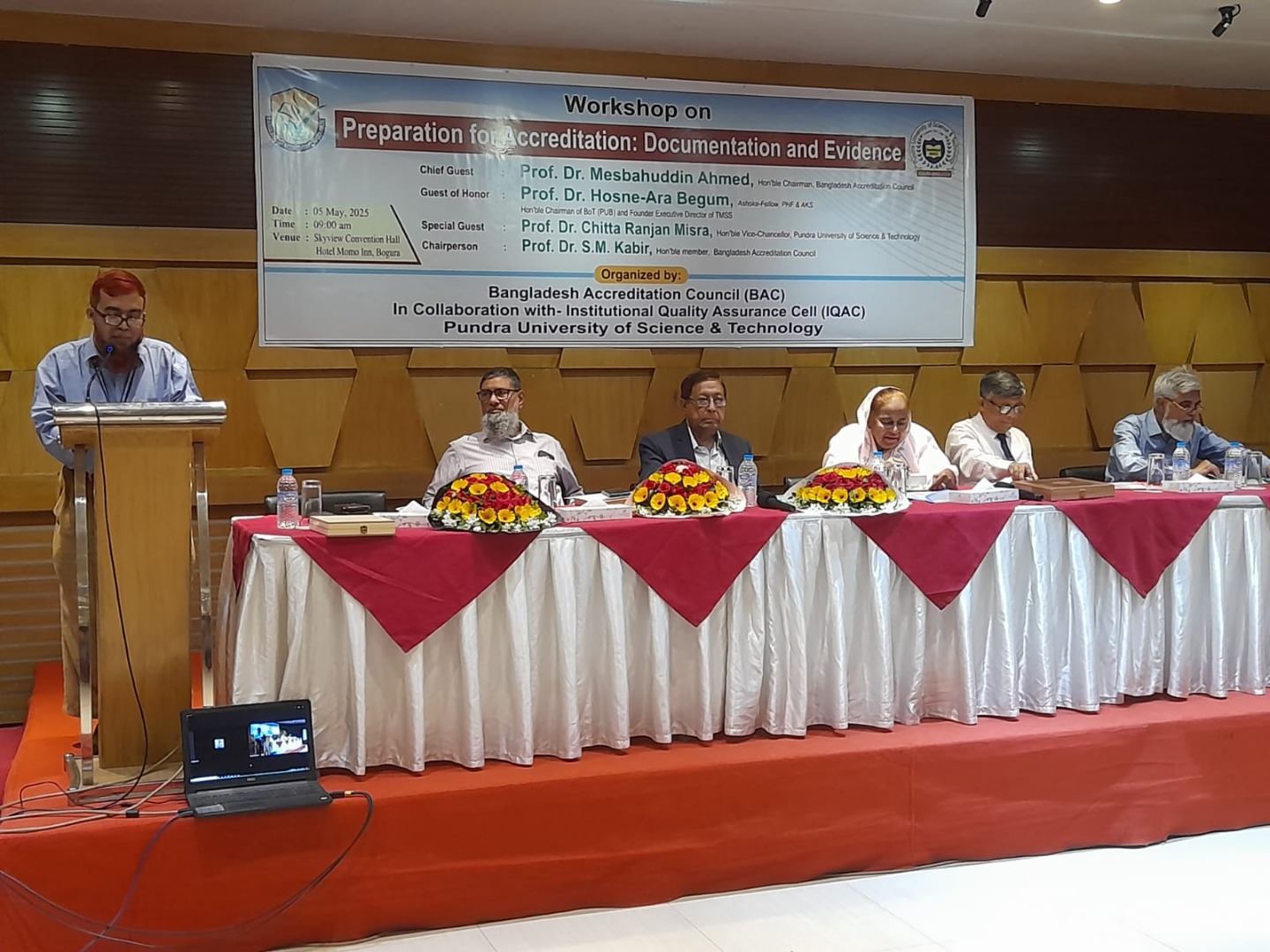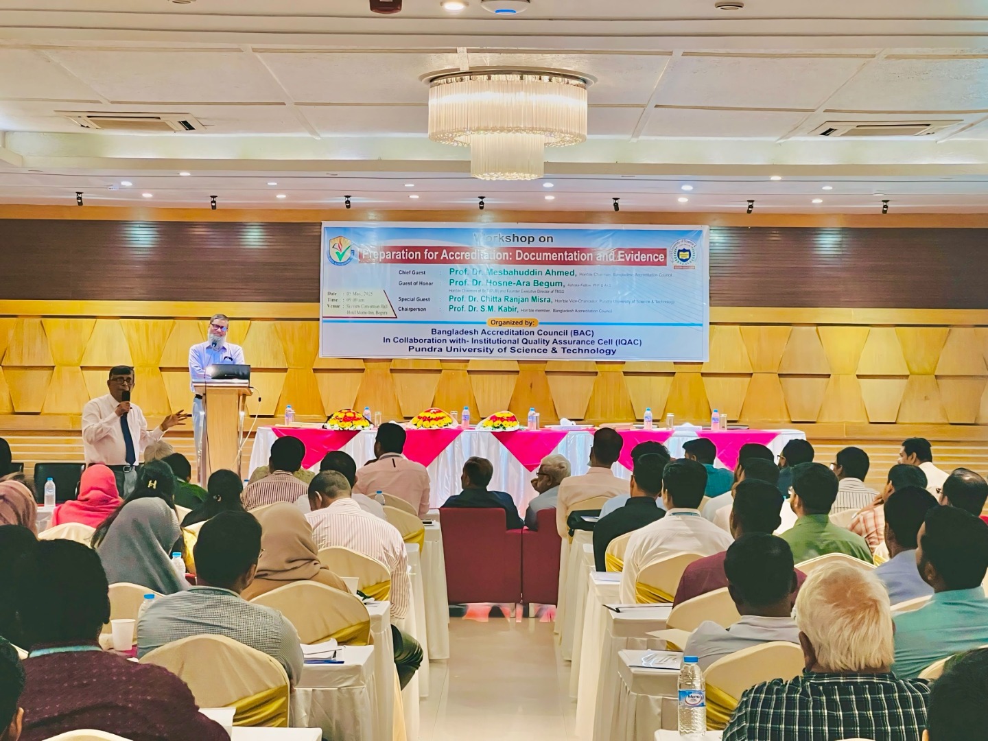 বগুড়ার পুণ্ড্র ইউনিভার্সিটি অব সায়েন্স অ্যান্ড টেকনোলজিতে ‘প্রিপারেশন ফর অ্যাক্রিডিটেশন: ডকুমেন্টেশন অ্যান্ড এভিডেন্স’ শীর্ষক একটি কর্মশালা অনুষ্ঠিত হয়েছে। সোমবার (৫ মে) সকালে বাংলাদেশ অ্যাক্রেডিটেশন কাউন্সিলের আয়োজনে ইনিস্টিটিউশনাল কোয়ালিটি অ্যাসুরেন্স সেল (আইকিউএসি), পুণ্ড্র ইউনিভার্সিটি অব সায়েন্স অ্যান্ড টেকনোলজির সার্বিক সহযোগিতায় কর্মশালাটি অনুষ্ঠিত হয়।